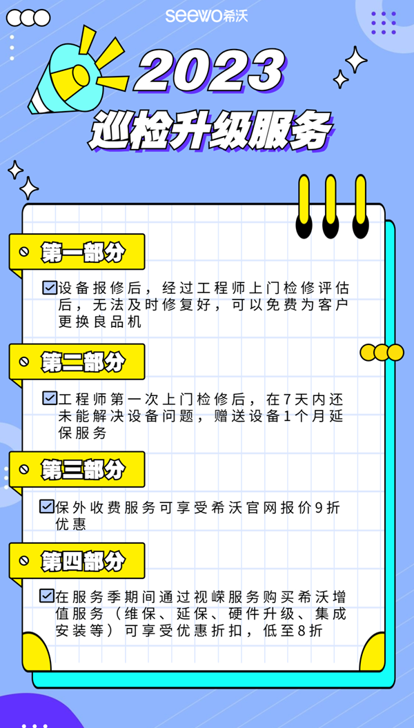 本年度巡檢活動(dòng)7-9月服務(wù)季期間,希沃服務(wù)重磅推出了升級(jí)服務(wù)。