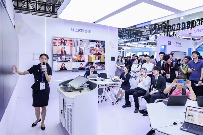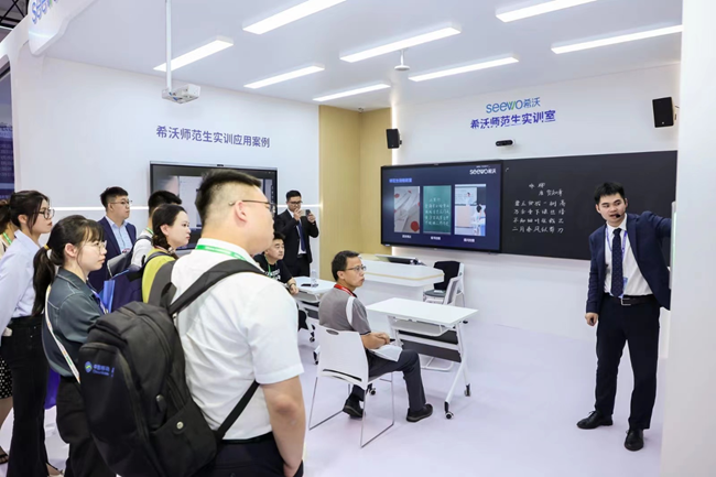 期間,教育數(shù)字化領(lǐng)域頭部企業(yè)希沃帶來搭載教學(xué)大模型的希沃第七代交互智能平板、希沃一體式教學(xué)終端N24、希沃品課2.0等硬件和軟件新品;同時(shí)展示了“五場景一平臺(tái)”高校解決方案,展示人工智能與數(shù)字化技術(shù)相結(jié)合,創(chuàng)新高等教育的教學(xué)新場景。