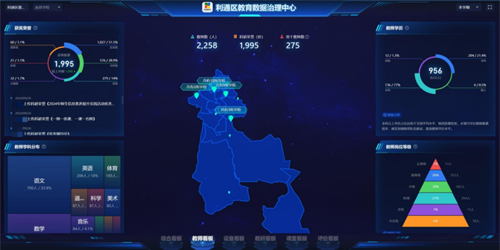 如今,通過希沃魔方·數(shù)字基座的教師看板,利通區(qū)教育局可以全面掌握全區(qū)各個學(xué)科的教師人數(shù)、學(xué)校分布以及崗位等級、學(xué)歷構(gòu)成等信息,清晰呈現(xiàn)的信息數(shù)據(jù)助力區(qū)域建設(shè)高質(zhì)量、創(chuàng)新型教師隊伍,支撐利通教育高質(zhì)量發(fā)展。