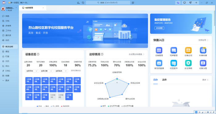 本次專場研討活動中,合肥新站實驗中學烈山路校區作為希沃魔方×釘釘教育首批標桿校,學校科技信息中心副主任楊俊作為特邀嘉賓,分享了基于希沃魔方和釘釘平臺的互聯互通實現數字化新基建的實踐經驗。