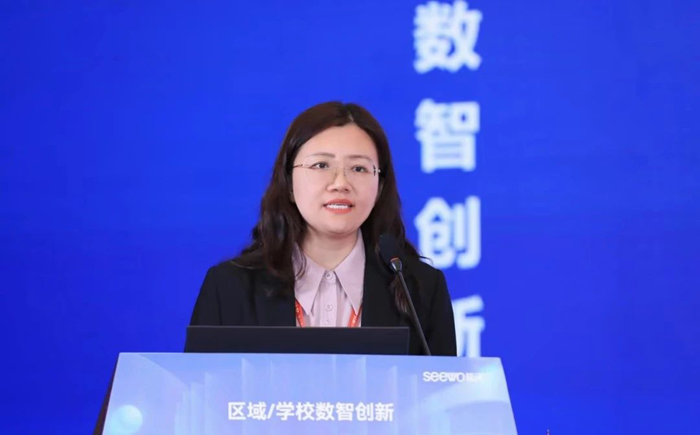 “希沃通過人工智能賦能數(shù)字化教學(xué)應(yīng)用,為教師提供備課、智能授課和智能評價(jià)等工具,提高教學(xué)效率和質(zhì)量!睆V東省杏壇智慧教育創(chuàng)新研究院教育研究部主任,希沃高級研究員方婭作《數(shù)智賦能跨學(xué)科教學(xué)》的主題報(bào)告。