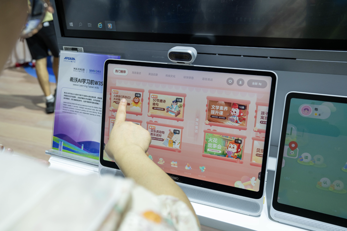 作為教育領(lǐng)域和辦公領(lǐng)域的應(yīng)用代表,視源股份分別展示了希沃AI學習機W3S與W20、希沃臺式計算機榫卯架構(gòu)、65英寸MAXHUB智能會議平板等多款硬件,并配套AI備課、AI作業(yè)輔導(dǎo)、AI會議等場景化應(yīng)用,吸引大量專業(yè)觀眾駐足。