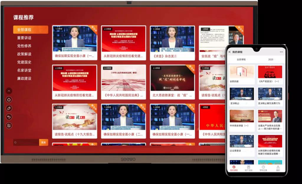方案內置權威而全面的課程資源,覆蓋黨史學習、重要講話、黨性修養、政策解讀、黨建國史、名家講堂、廉政建設等多項內容,進一步豐富紅色精神的內核,黨員不僅可以通過黨員智慧云課堂大板現場學習,也可以隨時隨地的通過“云課堂學習端”公眾號進行線上學習。