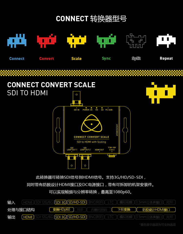 ATOMOS廣播級(jí)轉(zhuǎn)換器3G/HD/SD-SDI轉(zhuǎn)HDMI支持