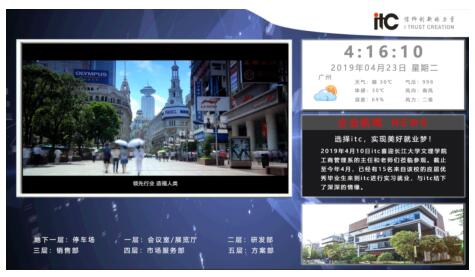 針對上述問題,itc推出了智能信息發布系統,支持多個設備集中遠程管控,一鍵上傳資訊,節省人力時間,內容集中管理,規范發布,提高工作效率,支持循環播放企業咨詢,使企業形象深入人心。