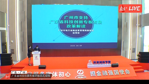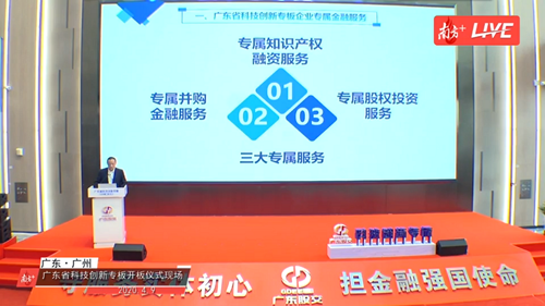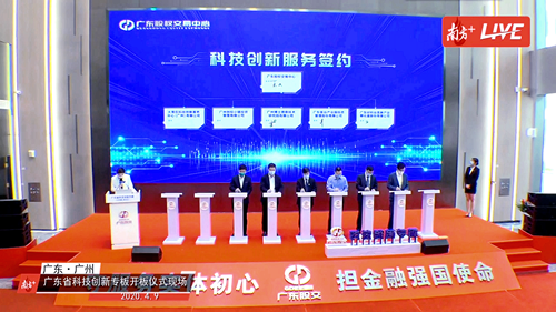 4月9日,“廣東省科技創(chuàng)新專板”開板儀式在廣東股權交易中心展示交易大廳舉辦,廣東省地方金融監(jiān)管理局、省科技廳、省市場監(jiān)管局、省發(fā)展改革委、廣東股權交易中心等領導及相關金融機構、科技服務機構、掛