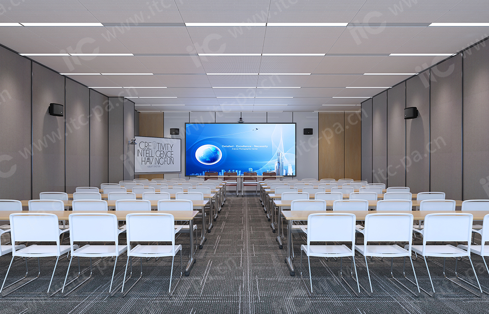 itc專業擴聲系統,語言清晰、無失真、聲壓余量充分、聲場分布均勻、無聲反饋嘯叫。