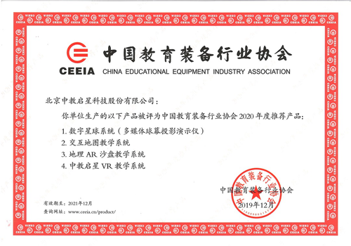 過去一年,中教啟星的VR教學(xué)系統(tǒng)榮獲中國教育裝備行業(yè)協(xié)會76屆中國教育裝備展產(chǎn)品金獎榮譽,并自動成為2020年度推薦產(chǎn)品審核;入選中國教育裝備行業(yè)協(xié)會第三批團體標準,成為地理團體標準制定的牽頭單位;數(shù)字星球、AR沙盤、交互教學(xué)系統(tǒng)獲中國教育裝備行業(yè)協(xié)會2020年度推薦產(chǎn)品等。