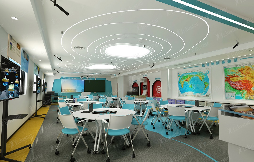 這間地理實(shí)訓(xùn)室以高端實(shí)驗(yàn)室的空間感作為環(huán)境設(shè)計(jì)原則,通過時(shí)尚明亮的設(shè)計(jì)風(fēng)格,融合多種教學(xué)功能,結(jié)合本地特色,以抽象的藝術(shù)處理體現(xiàn)本地人文風(fēng)情和地域特點(diǎn),建設(shè)出一個具有地理特色、設(shè)施領(lǐng)先、環(huán)境優(yōu)美的高水準(zhǔn)高校地理教育教法實(shí)訓(xùn)室。