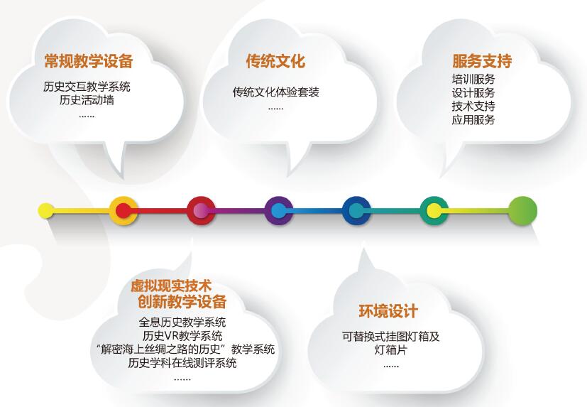 歷史教室集教學區、活動區以及讀書角等多功能區域為一體,支持學生室內交互、體驗活動的展開,能夠滿足歷史教學學科多樣化的教學需求。中教啟星歷史教室的設計風格多樣,有充滿傳統文化氣息的中中國風,也有適用現代信息技術以及新型教學模式發展的簡約風。在富有多樣性、沉浸性的歷史教學空間中,學生能夠在教師的引領下,認識人類社會發展歷程,培養歷史學科核心素養,提高綜合實踐能力,增強對歷史的興趣,激發創造力。