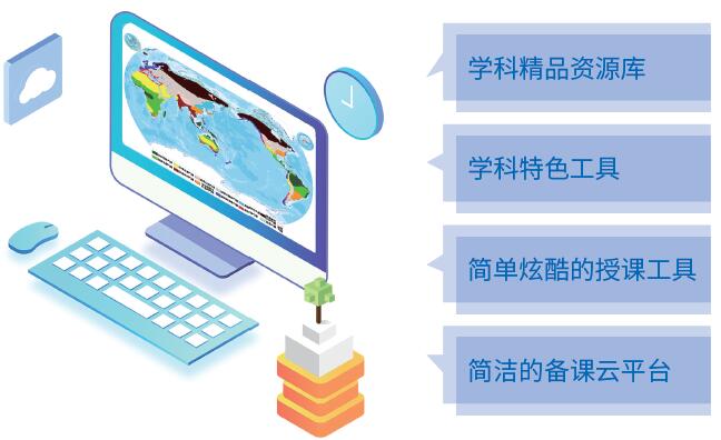 中教啟星地理圖課云教學平臺包含學科精品資源庫、學科特色工具、簡單炫酷的授課工具和簡潔的備課云平臺。
