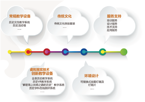 中教啟星歷史學(xué)科創(chuàng)新型專用教室解決方案以數(shù)字化與虛擬現(xiàn)實(shí)技術(shù)為核心,讓教學(xué)專用設(shè)備與資源、創(chuàng)新教學(xué)設(shè)備與課程、傳統(tǒng)文化體驗(yàn)套裝、模型教具及教室文化五大核心模塊真正的融入歷史教學(xué)應(yīng)用中,方案創(chuàng)新應(yīng)用虛擬現(xiàn)實(shí)VR教學(xué)系統(tǒng)、歷史交互教學(xué)系統(tǒng)、全息教學(xué)系統(tǒng)等一批虛擬現(xiàn)實(shí)設(shè)備和數(shù)字化設(shè)備,能夠優(yōu)化歷史教學(xué)目標(biāo)、優(yōu)化學(xué)科教學(xué)過(guò)程、強(qiáng)化歷史德育意義,打破學(xué)校歷史課程教學(xué)陳舊不變的教學(xué)方式,滿足學(xué)生與教師的需求,幫助學(xué)生構(gòu)建歷史認(rèn)識(shí)、做好歷史教師的腳手架。