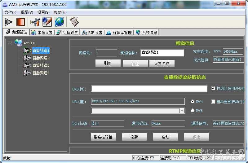 | 能夠新建、修改、刪除直播頻道,設(shè)置頻道參數(shù),如是否開啟組播、是否采用線性播出等;