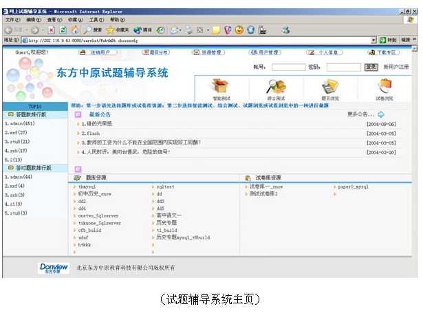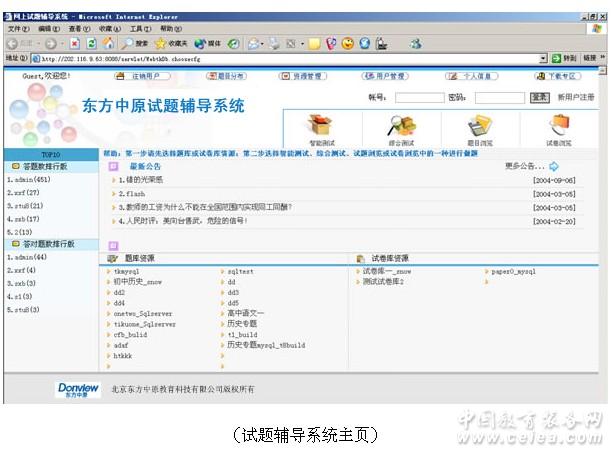 東方中原試題輔導(dǎo)系統(tǒng)主要面向教師群體和學(xué)生。它包括智能測試、綜合測試、試題瀏覽、試卷瀏覽、個人信息、下載專區(qū)等常用功能。用戶可對題目進行自測試或聽取不同名師對題目或試卷的不同講解,可以有效地理解題目,從而舉一反三,尋找到科學(xué)的解題方法,最終實現(xiàn)解題能力的不斷提高;系統(tǒng)還提供了自動判題功能,組卷功能,查看答案和解題過程功能;標識做過的試題功能。可對試題進行注解,若再遇上該題時可閱讀這些注解。