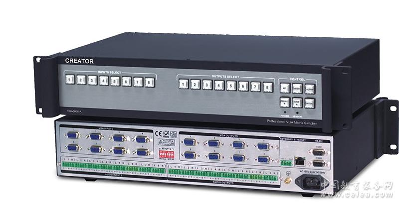 Pt-VGA0804-A是一款支持8路音視頻信號輸入,4路音視頻信號輸出的專業矩陣切換設備。用于將多個電腦信號和音視頻輸入信號同步或異步切換到多路輸出通道中的任一輸出通道。具有RS-232通訊接口和網絡接口,方便與電腦、遙控系統或各種遠端控制設備連接應用。