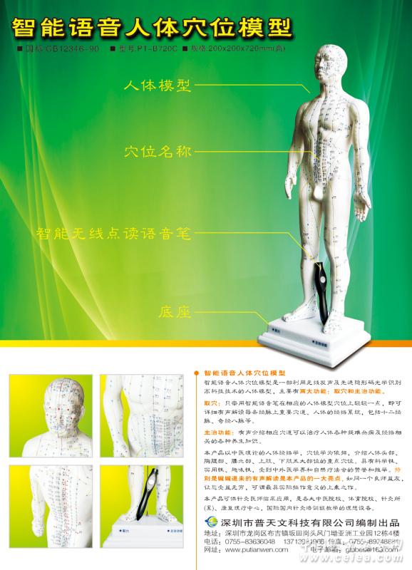 智能語音人體穴位模型是一部利用無線發(fā)聲及先進隱形碼光學識別高科技技術(shù)的人體模型, 盲人專用穴位按摩模型,.