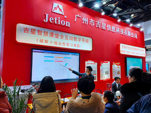 其中,吉星的全互動智慧課堂與實驗室智能考試系統備受大家歡迎,展區人潮涌動,眾多學校、經銷商現場申報試用。