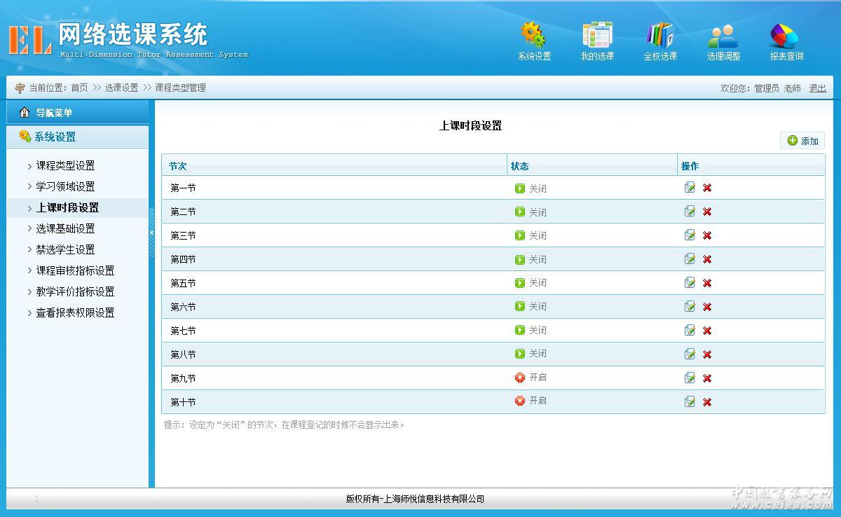 上課時段設置界面
