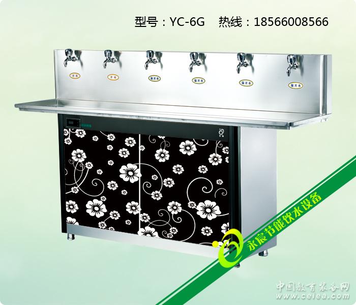 校園直飲水機(IC卡飲水機系列)的用途和特點:產品型號:YC-6G水膽容量:35L供 水 量:開水60 L/H、溫開水350L/H功 率:6KW電 源:380V 50Hz過濾系統:三級過濾外形尺寸:190×43×108可供人數:150~200人飲用校園直飲水機外觀優勢:外觀設計時尚美觀,前門板采用不銹鋼太陽花花紋設計,典雅、時尚校園直飲水機獨特優勢:1、跟飲用水接觸的配件:100%采用食品級304不銹鋼深加工組裝而成,不含任何對人體有害的重金屬殘留物。2、擁有世界頂尖飲水設備研發團隊,自主研發出顛覆性的全自動水位裝置。確保水罐時刻處于常壓狀態。3、全電腦智能控制,永不干燒;VFD顯示,采用自有發明專利智能電腦控制系統。4、推進分層加熱技術:取水后,設備采用逐層推進方式進水,逐層加熱,逐層沸騰。冷熱水離,電腦控溫,徹底杜絕“千沸水”。5、高效節能:采用國際優質防火保溫材料,高效新一代專利熱能交換。同等條件下,實測對比數據為:飲用開水比普通開水器省電39.6%,飲用溫開水比普通開水器省電83.23%。6、六重安全保護設計:控制部分全采用12VDC弱電控制。裝配自動防漏電、干燒、蒸汽、缺水、超溫保護。7、按鍵開關式,龍頭水嘴全304不銹鋼制作,126萬次使用測試,30萬次安全破壞性實驗。8、水質清純,無異味、設有加熱排空電磁閥,加熱時水里的異味、微量有害離子隨蒸氣完全排出。9、安全可靠、飲水機顯示‘飲用’時完全停止加熱、真正做到水電分離、在飲用過程中絕不會有觸電事故的發生。10、真正做到無混合水和千沸水:提示清晰明確、有‘非飲用’和‘飲用’信號提示。11、布線美觀,維修方便,安全可靠:設有多孔絕緣線槽,防止電線與金屬箱體直接接觸,同時防止電線老化而漏電短路;無需扎線,維修時只需揭開線槽蓋板,即可快速修復。12、配置:荷蘭進口世界第一品牌活性炭。可選擇加裝抑制水垢生成裝置、 RO處理裝置、IC水控裝置。