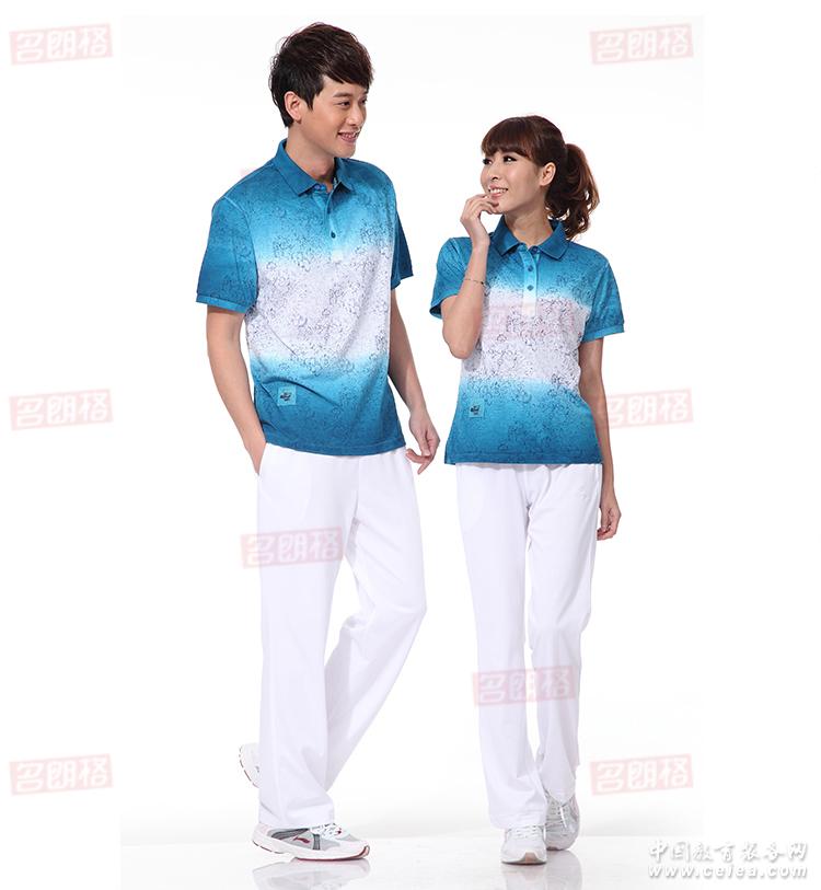 上衣款號:M8105(男)  M8106(女)  面料:竹節布   顏色:彩藍,玫紅,綠色