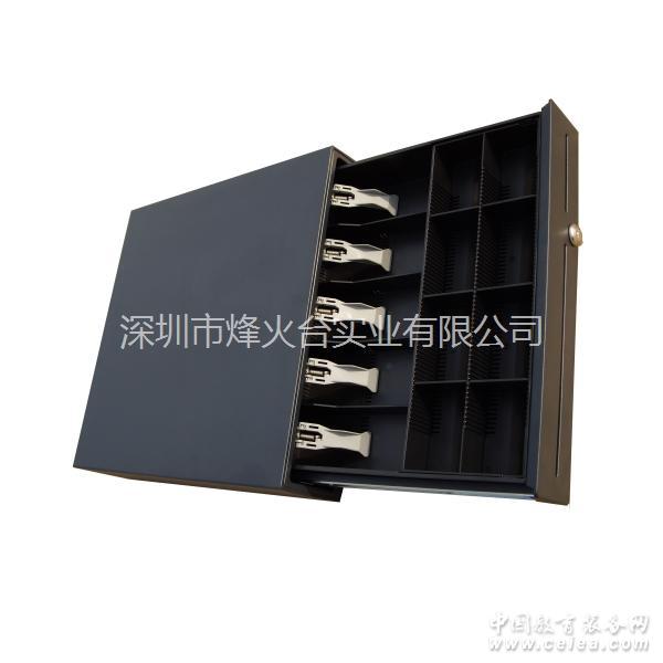 產品詳細介紹 深圳市烽火臺實業有限公司成立于2001年11月11日,是一家專門從事POS機錢箱的開發、設計、生產、銷售、服務的專業公司。 自公司成立至今,我們已經成功推出了FWD-40系列錢箱、FWD-50系列錢箱、FWD-41系列錢箱、FWD-48系列錢箱、FWD-4142系列錢箱、FWD-4617錢箱系列等6個系列30多種規格型號的POS機錢箱產品,并已成為國內外多家知名POS企業包括青島海信、中科英泰、桑達龍金、上海郵通、上海飛懋、五豐科技、IBM、HP等的錢箱供應商,產品已經被廣泛用于超市、百貨、餐飲、郵政、電信等行業,公司也成長為國內生產中高檔錢箱的龍頭企業。2008年,公司成功收購了主營五金加工的深圳市振康實業有限公司,使得公司產品的主要部件有了自主加工能力,質量更加有了保障。 FWD-CR1000錢箱特性 1.采用滑軌結構,具有以下優點 承重能力強 能平穩滑動,抖動少 運行時噪音小 整體接地性能好,防靜電能力強 耐磨性好,使用壽命長 2.有支票.卡.券等的放置口 3.錢幣存放格寬度可根據需要進行調整 4.任何POS打印機或主機等都可以打開錢箱 5. 可增加錢箱開關狀態檢測功能