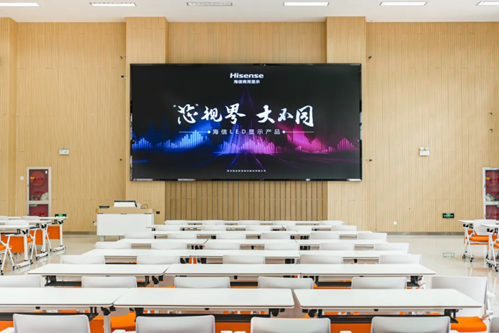 此外,在東營職業(yè)學(xué)院實(shí)訓(xùn)教學(xué)樓階梯教室,則采用海信LED產(chǎn)品打造學(xué)校小型報(bào)告廳,用于學(xué)校會(huì)議及校園活動(dòng)。