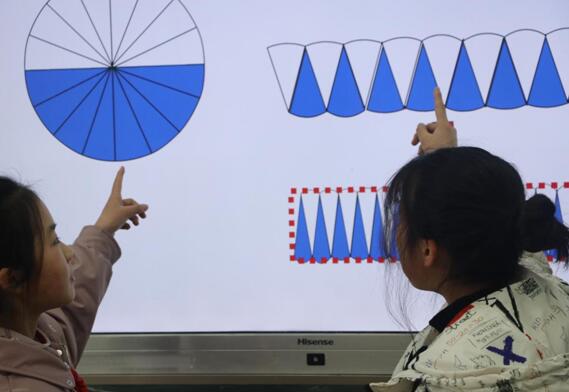 李老師還強調(diào):“海信交互式一體機可以在原有的課件上進行涂抹和修改,也可以對書寫文本進行拖曳、放大、旋轉(zhuǎn)和遮罩等,當原有“黑板”寫滿后,只需要重新創(chuàng)建一個即可,相較于傳統(tǒng)的黑板,極為便捷,同時能夠?qū)崟r記錄課堂教學過程,即刻調(diào)用所需數(shù)據(jù)資料,極大的滿足了我們教師對互動教學的迫切需求。例如,我在教授《三角形內(nèi)角和》一課時,通過海信交互式一體機的畫圖工具輕松繪制出三角形,運用照相功能對三角形的三個內(nèi)角分別照相獲取和三角形三個內(nèi)角度數(shù)相同的三個角,再旋轉(zhuǎn)和移動這三個角,使其同頂點重合,這樣不僅操作方便,同時能夠避免傳統(tǒng)折紙法出現(xiàn)的教學誤差。”