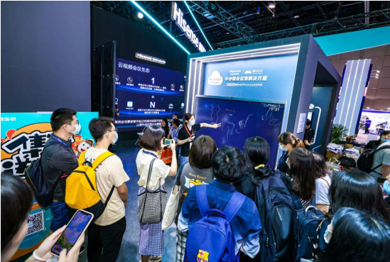 除了智能顯示和智慧辦公產品外,海信商用顯示公司還展出教育智慧雙屏互動解決方案。前來觀看體驗的人絡繹不絕,贊不絕口。