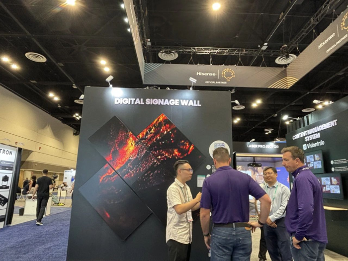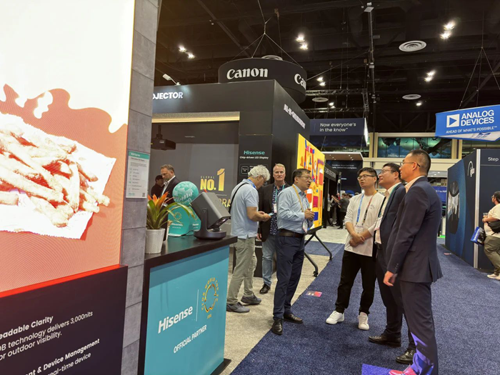 當(dāng)?shù)貢r(shí)間6月11日至6月13日,全球?qū)I(yè)視聽(tīng)領(lǐng)域盛會(huì)InfoComm 2025在美國(guó)奧蘭多舉行。海信商用顯示攜場(chǎng)景智慧顯示產(chǎn)品及解決方案亮相,展品涵蓋136英寸COB LED一體機(jī)、得來(lái)速餐廳場(chǎng)景戶(hù)外COB、7*24小時(shí)數(shù)字標(biāo)牌DM系列、7*16小時(shí)數(shù)字標(biāo)牌DP系列、智慧觸控一體機(jī)、商用激光投影及信發(fā)集控平臺(tái)VisionInfo等,并聯(lián)合海信4K三色激光影院產(chǎn)品參展,為零售、教育、辦公、文體娛樂(lè)等場(chǎng)景提供數(shù)字化轉(zhuǎn)型新范式。