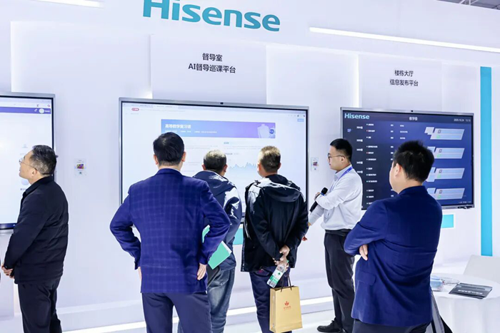 除了智慧教室解決方案,海信商用顯示還展出了校園樓棟信息發(fā)布平臺、校園設(shè)備集控平臺、AI督導巡課平臺,三大平臺共同勾勒出新時代智慧校園圖景。