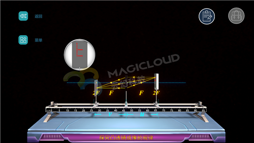 如物理教學中,AR技術可以將光線、磁感線、力的方向等等表現出來。如在凸透鏡成像實驗中,對光線進行模擬,讓學生清晰的知道光線是如何通過凸透鏡并成像的;在測量滑動摩擦力實驗中,對力的方向進行標注,便于學生理解摩擦力;在研究磁場的方向實驗中,模擬磁感線方向,讓學生清晰的知道磁鐵的磁場分布情況。知識的清晰直觀,讓學生的學習更輕松,讓教師的教學更便捷。