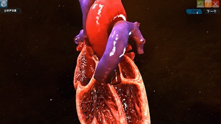 如《心臟和血液循環》課程,在VR互動教學資源中,首先教師可以給學生展示教學視頻,跟隨著視頻了解心臟的結構、血液流動所經過的部位、形成的循環體系等;其次再通過互動部分對心臟部位進行拆分學習,跟隨著血液經過的體循環與肺循環相關部位,對心臟和血液流動形成深刻的認識。學生不僅可以局部放大,還可以操縱鼠標使其在三維層面上任意方向任意角度的觀察。
