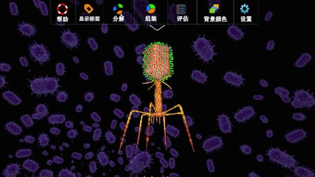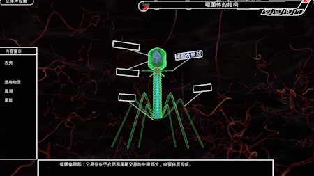 在VR互動教學資源中,《病毒》課程包含視頻、互動、練習三個部分,教師可以通過播放視頻讓學生們了解病毒的類型、結構、繁殖等相關知識,其次可以通過互動部分內容對病毒的結構進行拆解學習,了解每個部位的功能設置等,最后可以通過練習部分回顧本節課的主要內容以及進行測評,評估學習者本節課知識內容的掌握程度。