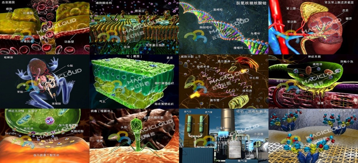 生物:創(chuàng)設(shè)3D生態(tài)情景,將已知生活中的生命活動(dòng)和生命跡象、細(xì)胞合成及分裂現(xiàn)象從靜態(tài)到動(dòng)態(tài)、由抽象到形象;