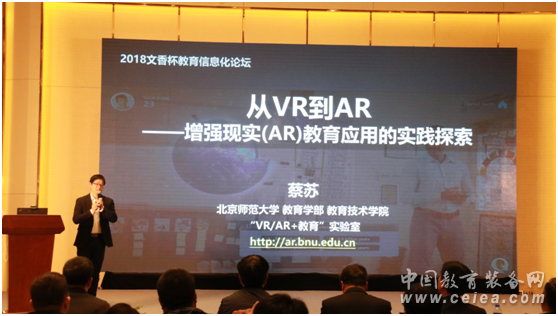 北師大教育技術學院博士蔡蘇博士帶來主題為“VR/AR教育應用的實踐探索”的演講,其講解給現場觀眾帶來了不一樣的視聽盛宴。