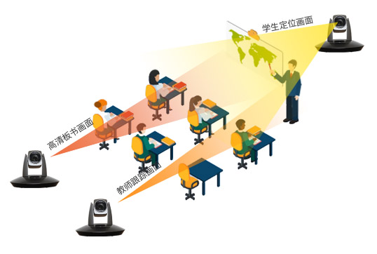 支持多路攝像的跟蹤定位拍攝,分別對應教師區、學生區以及板書區;支持階梯教室跟蹤,不會因為前后座位高度的差異導致跟蹤混亂。