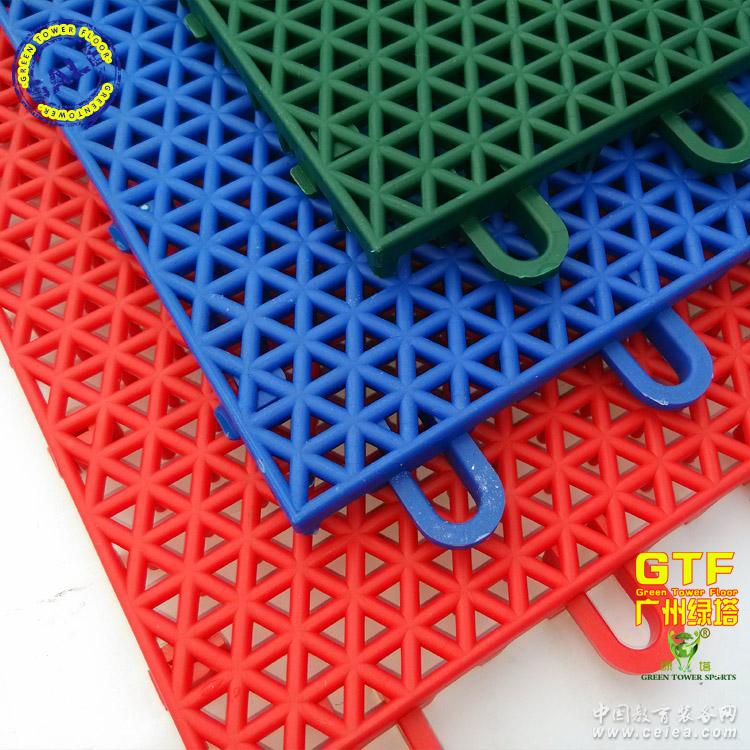產(chǎn)品詳細(xì)介紹=圓柱三角形懸浮地板LTYZSJX產(chǎn)品特點(diǎn)== 產(chǎn)品名稱:懸浮式拼裝地板 產(chǎn)品介紹:型號(hào):LTYZSJX 名稱:懸浮式拼裝地板/圓柱米格地板 尺寸:250*250*12.7mm 使用壽命:8-10年 材料:聚丙烯(PP) 表面形態(tài):圓柱米格 使用溫度:-40℃——80℃ 產(chǎn)品優(yōu)點(diǎn): 1、良好的運(yùn)動(dòng)及保護(hù)性能; 2、拼裝設(shè)計(jì)、容易安裝及拆卸; 3、單片受損單片更換,不影響使用; 4、迅速排水,全天候使用; 5、100%可回收,無(wú)污染,食品級(jí)安全材料,無(wú)毒無(wú)味,無(wú)重金屬; 6、10年超長(zhǎng)使用壽命; 7、顏色多樣,顏色可根據(jù)客戶需求設(shè)定 拼裝運(yùn)動(dòng)地板特點(diǎn): 1、壽命長(zhǎng): 本產(chǎn)品主要材料為聚丙烯(PP)。綠塔拼裝運(yùn)動(dòng)地板在原料中同時(shí)采用抗寒冷、抗氧化、抗紫外線輻射等多種添加劑,屬改性的工程聚丙烯材料,保證了本產(chǎn)品在全天候(高溫+70°C、-40°C)條件下使用色澤持久、不翹曲、不變形,壽命超過(guò)15年。 2、綠色環(huán)保: 聚丙烯(PP)屬食品級(jí)材料,是無(wú)毒、無(wú)味、不寄生細(xì)菌的綠色環(huán)保產(chǎn)品。 3、多功能性: 產(chǎn)品適用于室內(nèi)外網(wǎng)球場(chǎng)、籃球場(chǎng)、足球場(chǎng)、手球場(chǎng)、羽毛球場(chǎng)、乒乓球場(chǎng)、曲棍球場(chǎng)等體育運(yùn)動(dòng)場(chǎng)地,同時(shí)也適用于健身中心、幼兒園、各種休閑娛樂(lè)場(chǎng)所。尤其是在室外鋪裝鏤空的地板,排水效果好,雨后即可使用,更適合在雨水較多的地區(qū)使用。 4、有效的緩沖性能和高彈性能: 弓形懸浮梁、加強(qiáng)支撐腳技術(shù)的應(yīng)用,使拼裝后的運(yùn)動(dòng)地板具有卓越的減震性能,可有效減少對(duì)運(yùn)動(dòng)員的損傷;同時(shí)能夠增加對(duì)球的回彈性,籃球的反彈率可達(dá)96%(國(guó)家標(biāo)準(zhǔn)GB/T19995.2--2005要求籃球反彈率為90%以上)。 5、標(biāo)準(zhǔn)的防滑值: 在表面防滑處理上,地板的設(shè)計(jì)采用了仿生學(xué)的原理,產(chǎn)品的防滑值達(dá)到了德國(guó)標(biāo)準(zhǔn)DIN18032對(duì)運(yùn)動(dòng)木地板的要求。 6、性價(jià)比高: 適應(yīng)性強(qiáng)(可適用于室內(nèi)外)、投資少(基礎(chǔ)投資僅僅是PU運(yùn)動(dòng)地板的一半)、壽命長(zhǎng)(是PU塑膠運(yùn)動(dòng)地面的兩倍以上)、質(zhì)量穩(wěn)定(本產(chǎn)品基礎(chǔ)層無(wú)需防水處理,而PU塑膠運(yùn)動(dòng)地板基礎(chǔ)層防水處理不好的情況下可能出現(xiàn)起鼓現(xiàn)象)、色彩豐富(顏色由用戶選定或提供色樣),安裝、拆卸、更換、移動(dòng)方便,維護(hù)成本低,是各類運(yùn)動(dòng)場(chǎng)地的最佳選擇。