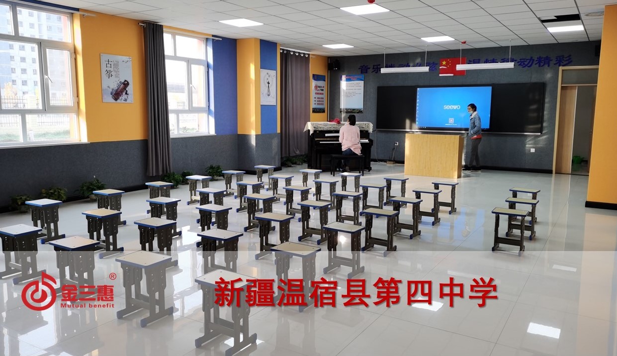新疆溫宿縣第四中學的電鋼琴教室音樂教室正式開始使用,本校數字化音樂教室由北京金三惠科技有限公司負責提供、安裝、培訓。