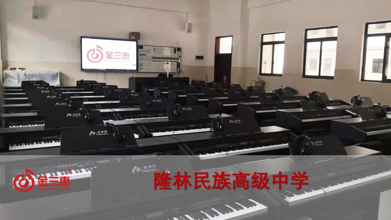 隆林民族高級中學(xué)的電鋼琴教室正式開始使用,本校數(shù)字化音樂教室由北京金三惠科技有限公司負(fù)責(zé)提供、安裝、培訓(xùn)。
