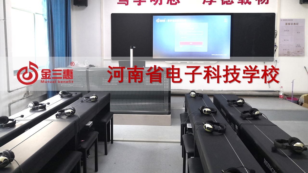 河南電子科技學校數字化音樂教室正式開始使用,本校數字化音樂教室由金三惠品牌負責提供、安裝、培訓。