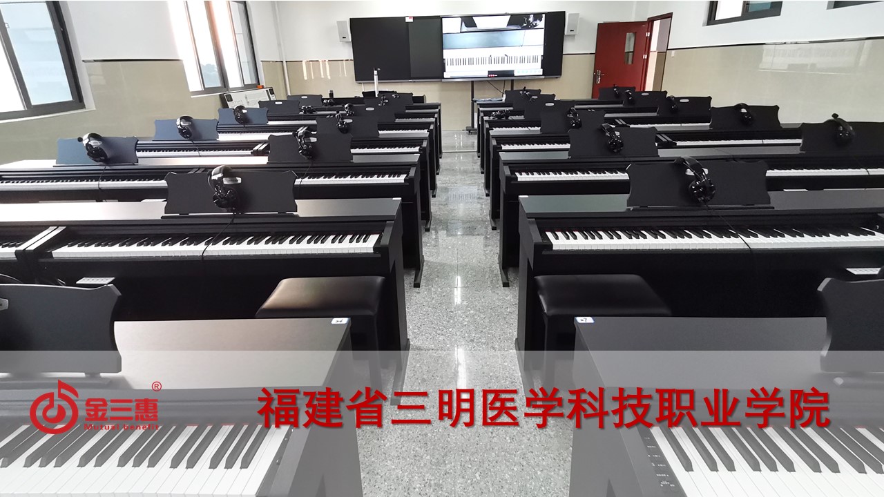 福建省三明醫學科技職業學電鋼琴教室正式開始使用,本校數字化音樂教室由北京金三惠科技有限公司負責提供、安裝、培訓。