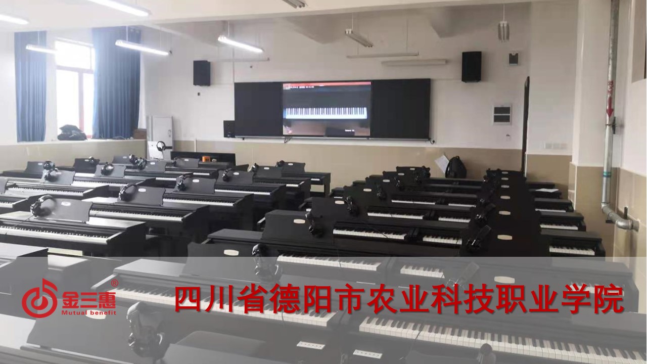 四川省德陽市農業科技職業學院的電鋼琴教室正式開始使用,本校數字化音樂教室由北京金三惠科技有限公司負責提供、安裝、培訓。
