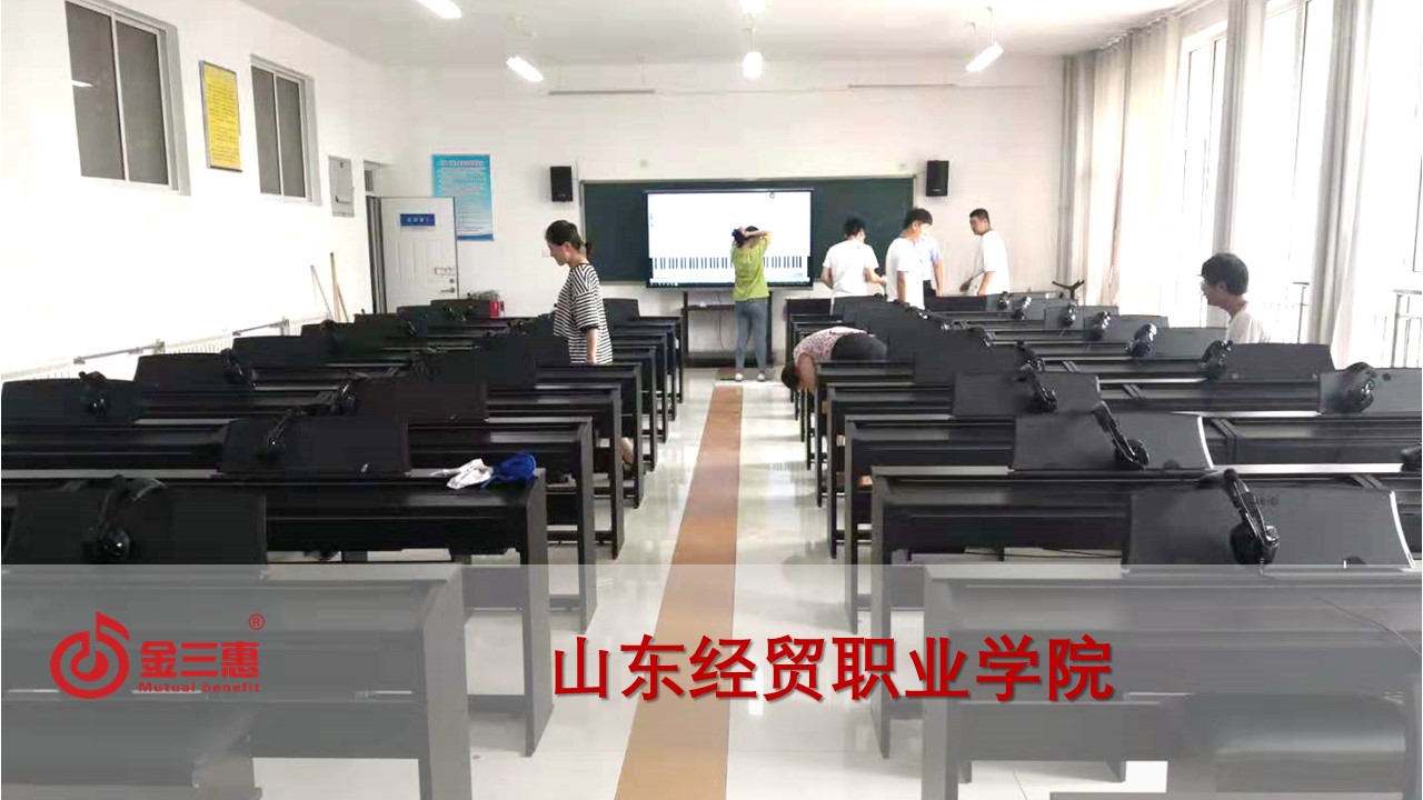 山東經(jīng)貿(mào)職業(yè)學院的數(shù)字音樂電鋼琴教室正式開始使用,本校電鋼琴教室由北京金三惠科技有限公司負責提供、安裝、培訓。