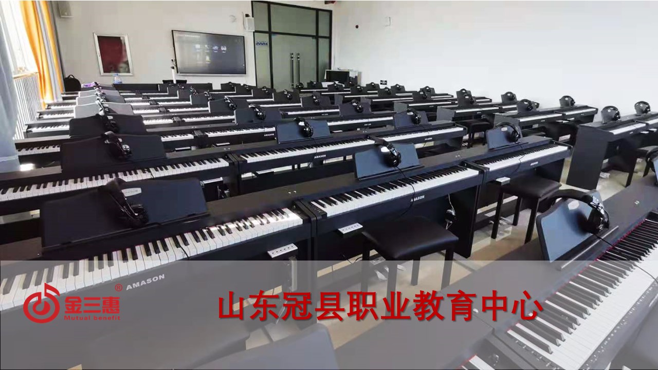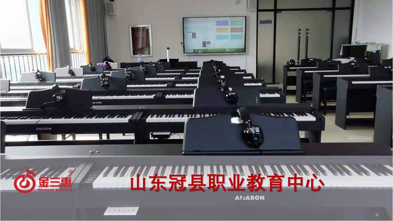 山東冠縣職業(yè)教育中心的電鋼琴教室正式開(kāi)始使用,本校數(shù)字化音樂(lè)教室由北京金三惠科技有限公司負(fù)責(zé)提供、安裝、培訓(xùn)。