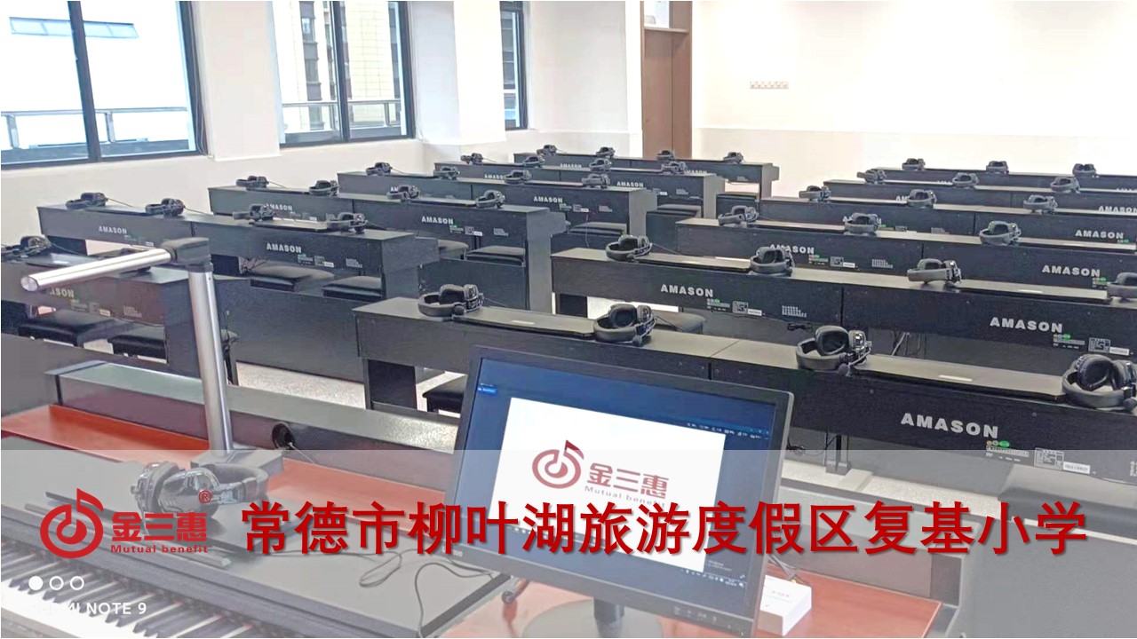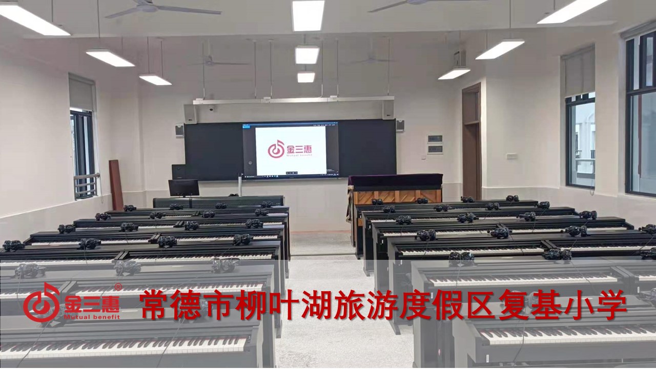 南常德市柳葉湖旅游度假區復基小學的數字電鋼琴教室正式開始使用,本校電鋼琴教室由北京金三惠科技有限公司負責提供、安裝、培訓。