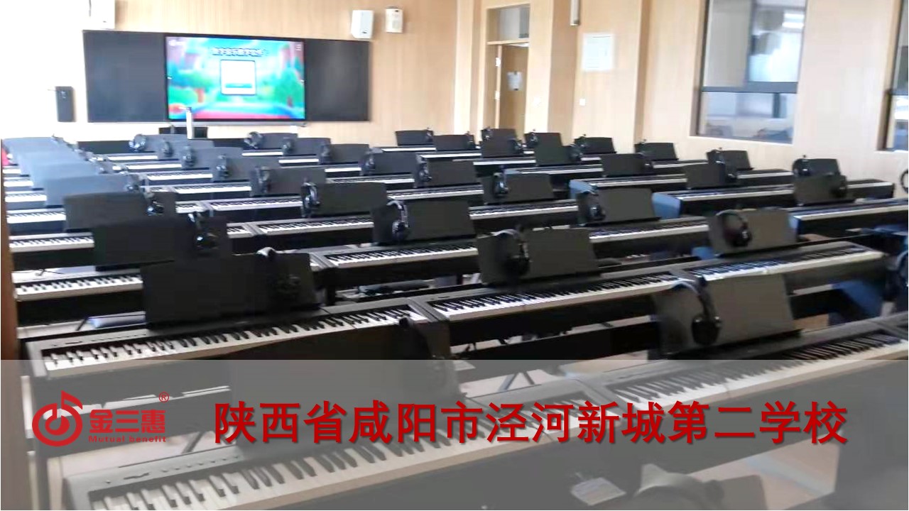 陜西省咸陽市涇河新城第二學校的數字音樂電鋼琴教室正式開始使用,本校電鋼琴教室由北京金三惠科技有限公司負責提供、安裝、培訓。