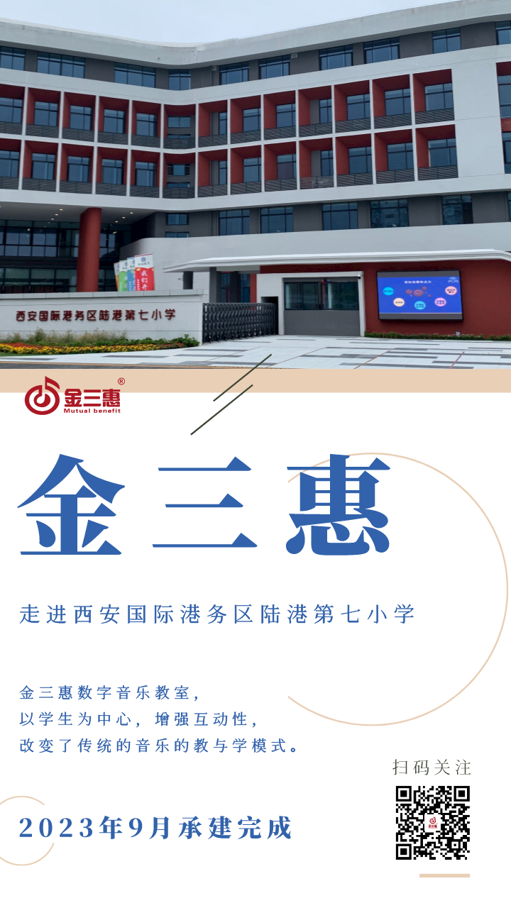 2023年9月,金三惠數字音樂教室為西安國際港務區陸港第七小學提供、安裝、培訓的常規數字化音樂教室(國標)、合唱教室正式開始使用!配備了金三惠教學系統、電鋼琴、數字音樂教學儀、學生樂器等教學教具。國標室-金三惠 (jinsanhui.com)