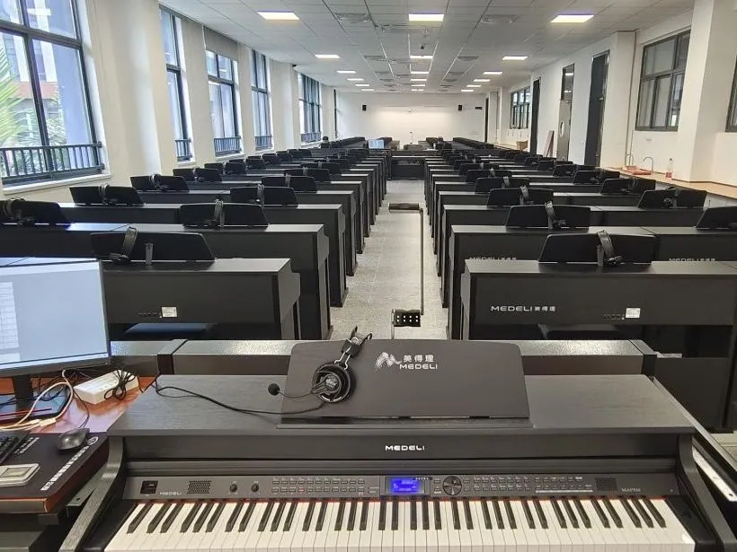 2024年6月,金三惠數字音樂教室為廣東省東莞市海德雙語學校提供、安裝、培訓的2間44+1電鋼琴教室正式開始使用!配備了金三惠教學系統、電鋼琴、數字音樂教學儀等教學教具。