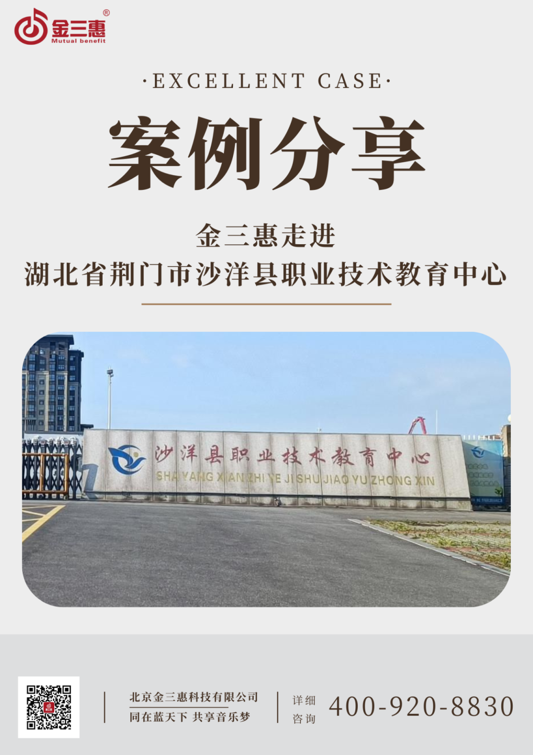 2025年7月,金三惠音樂教室走進湖北省荊門市沙洋縣職業技術教育中心,為學校提供了32+1的電鋼琴教室,配備了金三惠電鋼琴教學系統、電鋼琴、數字音樂教學儀等教學教具。