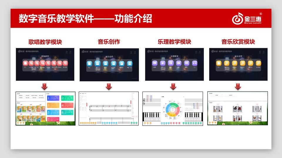 金三惠更好地響應(yīng)國家教育部關(guān)于教育信息化發(fā)展工作,北京金三惠科技有限公司作為國內(nèi)領(lǐng)先的音樂教育的自主研發(fā)、生產(chǎn)、銷售為一體的服務(wù)商,提供《新常態(tài)、音樂教室、整體解決方案》,解決關(guān)于學(xué)校音樂教學(xué)的提升建設(shè)、教學(xué)特色發(fā)展以及教學(xué)資源全覆蓋等需求。針對各標準的出臺,新研發(fā)出《數(shù)字音樂創(chuàng)客教學(xué)管理系統(tǒng)》《音樂素養(yǎng)訓(xùn)練系統(tǒng)》《音樂測評訓(xùn)練系統(tǒng)》《音樂測評組卷系統(tǒng)》《音樂專遞課堂教學(xué)軟件》《電鋼琴教室教學(xué)管理軟件》等十幾種音樂教育教學(xué)管理系統(tǒng),滿足不同學(xué)校需求,全方面促進全國音樂教育素養(yǎng)的提升,金三惠一直為同在藍天下共享音樂夢而奮斗。